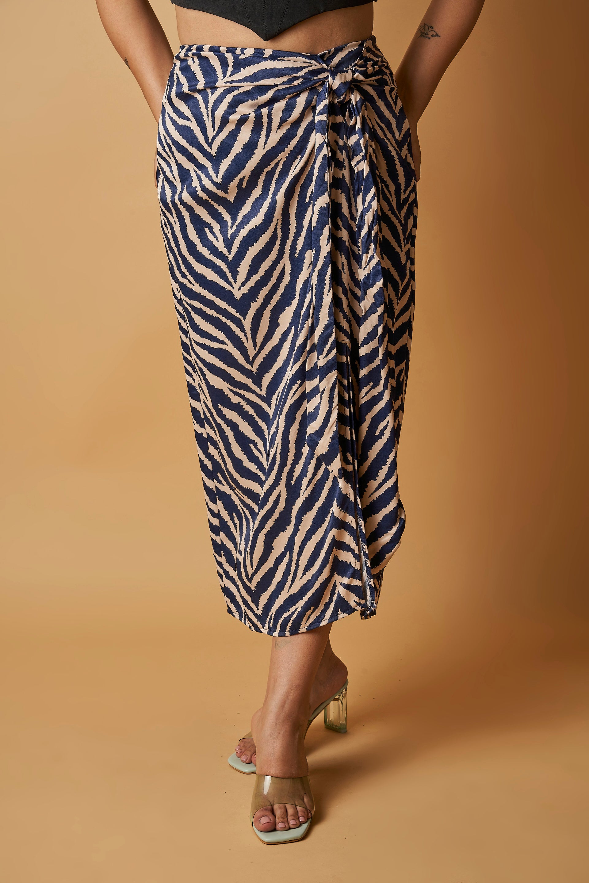 Draped satin skirt with side slit. Wrap tie up detail at side. Invisible zip fastening at back.